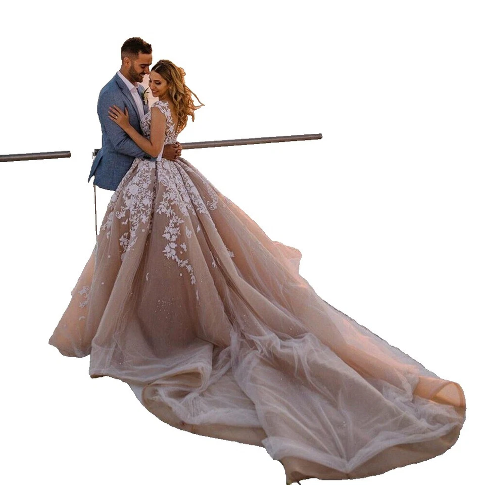 Champagne Manga Corta Vestidos de novia