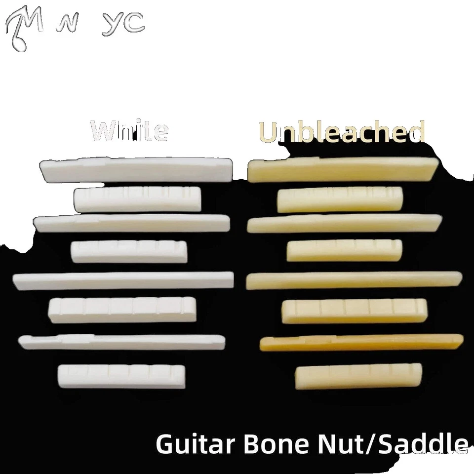 10x Sillín de hueso en blanco sin blanquear 85x3,5x10 mm para guitarra bajo tuerca de puente Luthier